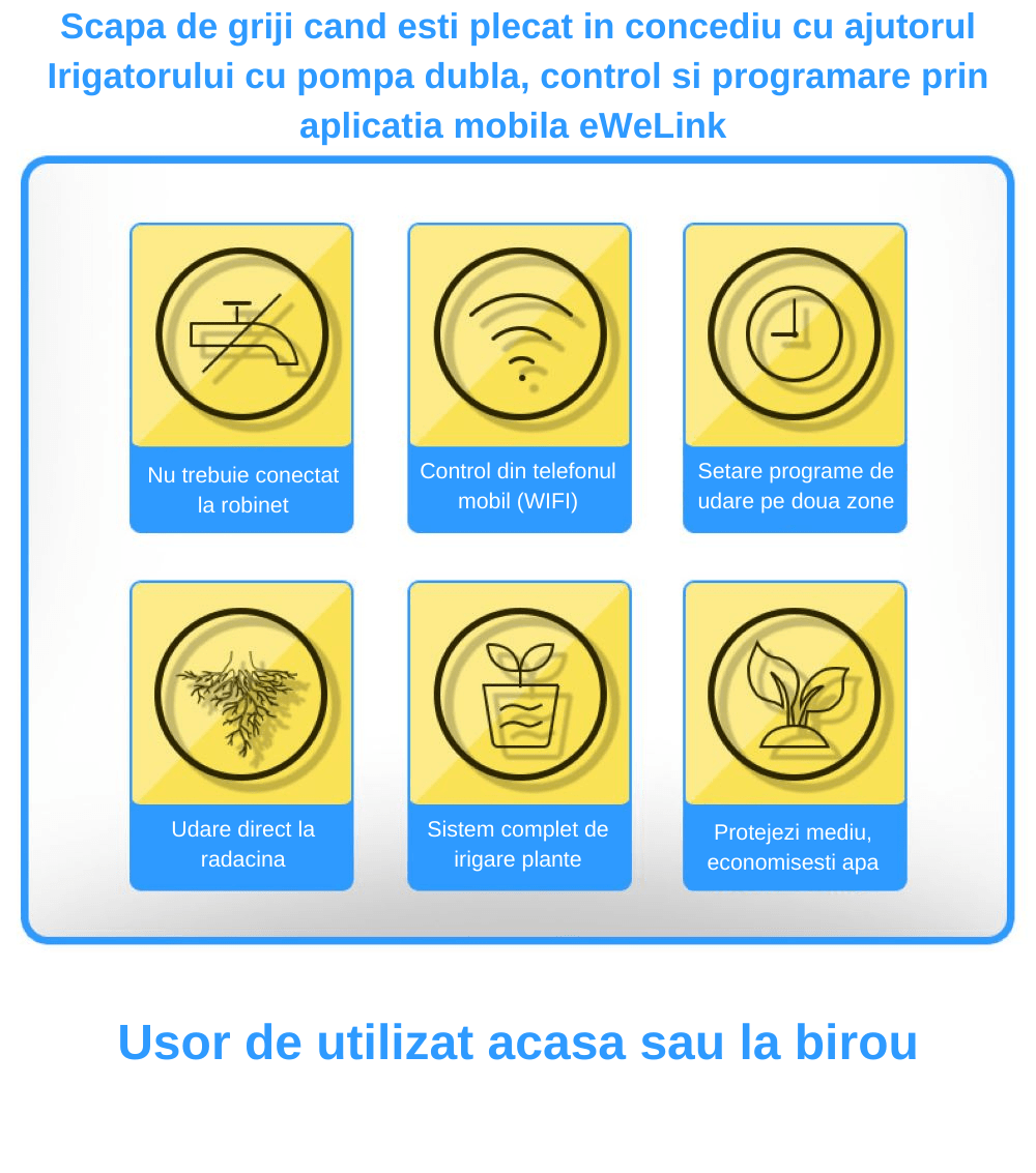 Kit de irigat WIFI la radacina plantelor, Florilor, MOGODA® va permite sa gestionati de la distanta udarea plantelor!
